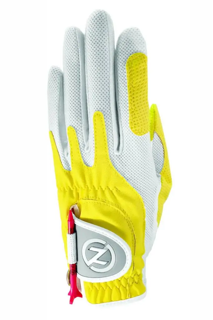Count on Zero Friction Performance Golf to design a Superior Golf Glove using Compression-Fit Technology. Features: – All-Weather Synthetic Digitized Palm and Patch – Detachable Ball Marker – Holds Shape Longer – Smooth Palm for Maximum Feel – White Mesh Lycra Throughout Finger, Back of Hand and Palm for Breathability – Includes (1) Free ZFV 5-Prong Performance Tee